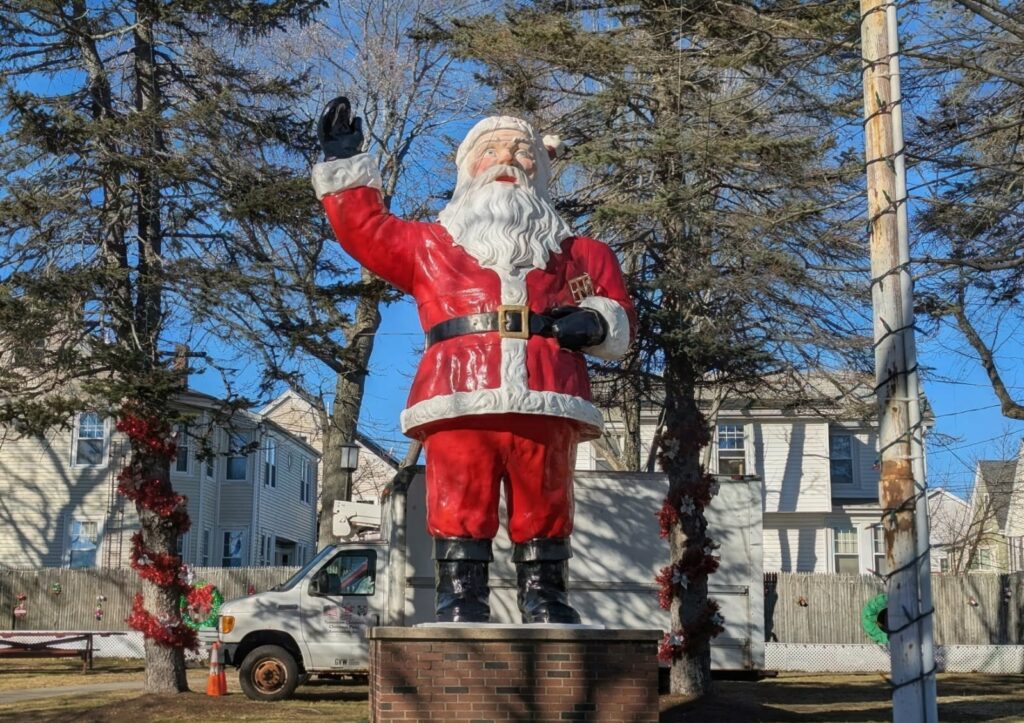 If you pass by Coletti-Magni Park in Nonantum during December, you’ll see an 18-foot-tall Santa Claus statue waving toward the street. The neighborhood’s Santa tradition dates back to the 1950s, and this is Nonantum’s third Santa, replacing earlier ones that served the community over the past 70 years.