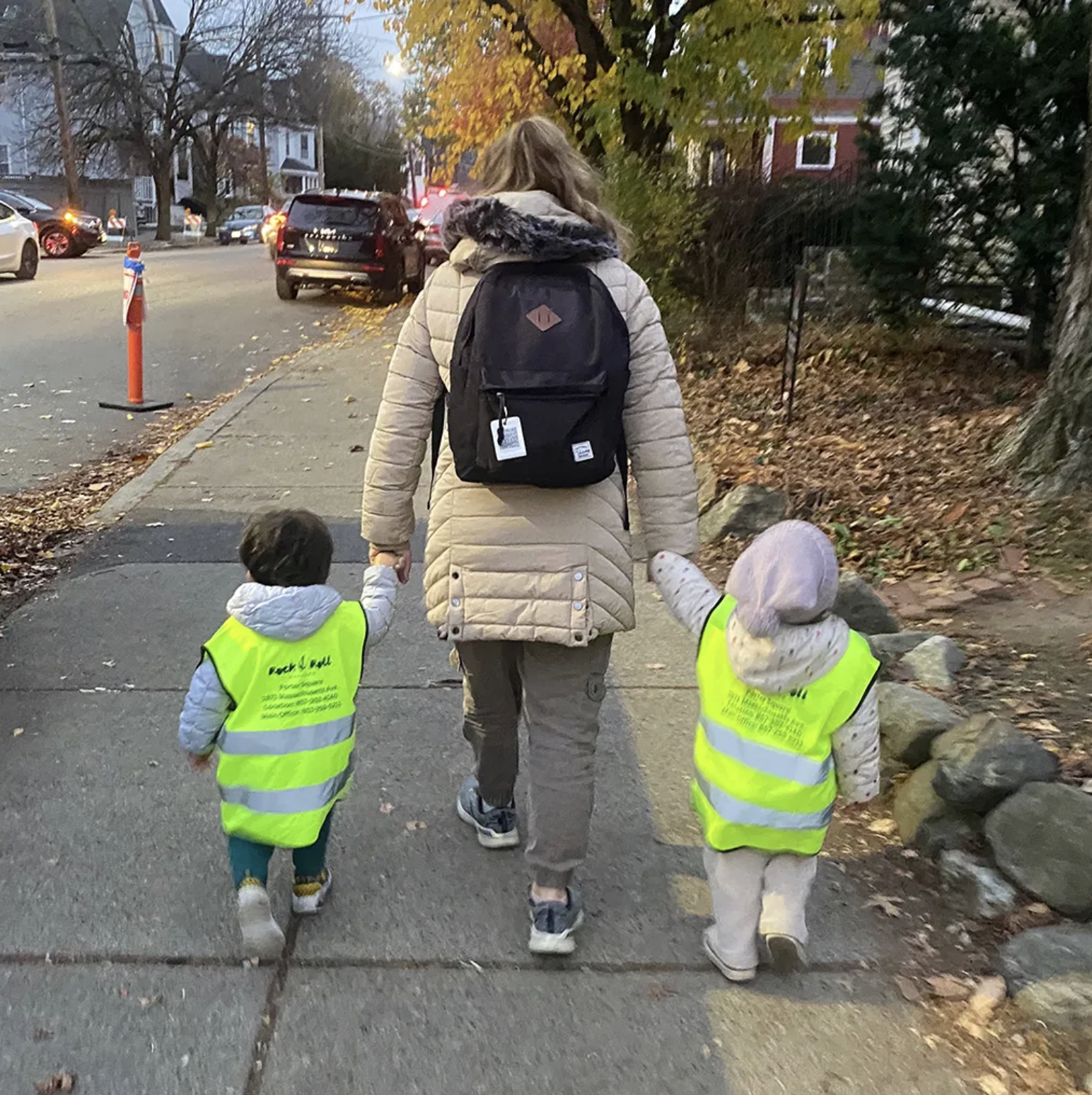 Kids are walked home from the Rock & Roll Daycare in Porter Square in November, 2024. Five sites in the chain citywide partner with Cambridge as preschool providers. Credit: Marc Levy