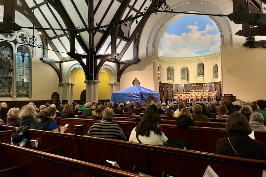 They filled the first 10 pews in the sanctuary — a room with arched entryways, stained glass windows and vaulted ceilings with exposed wooden rafters.