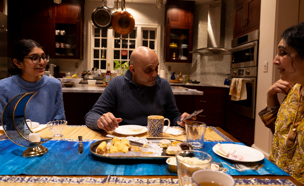 The sun had just set over Khadija Khan’s home, wood paneling glinting in the low light, the aroma of samosas and masala spice wafting into the living room. In the kitchen, her family prepared food for iftar, the breaking of the fast, chopping, heating, waiting.