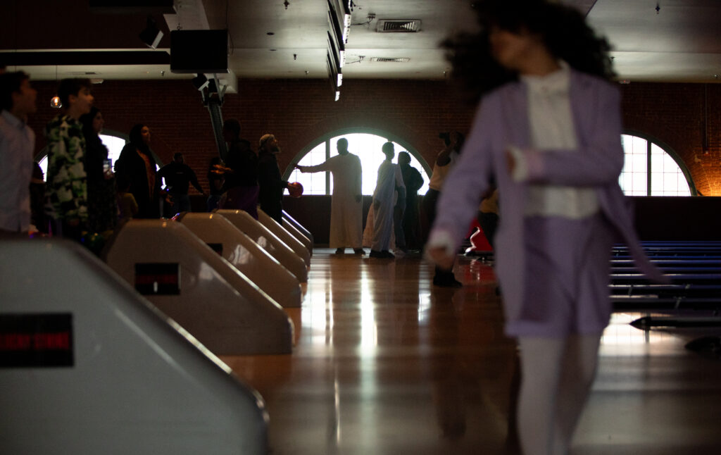 Essmaeel Abdel-Dayem sits back, observing the scene before him. He is at Lucky Strike in Fenway, where Brookline families have booked most of the top-floor bowling alley. In the back, his son Ibrahim plays pool with his cousin and classmates. Abdel-Dayem said it was “heartwarming” to see his kids finally able to enjoy the day freely. “Many of them wouldn’t be here if they had school,” he said.