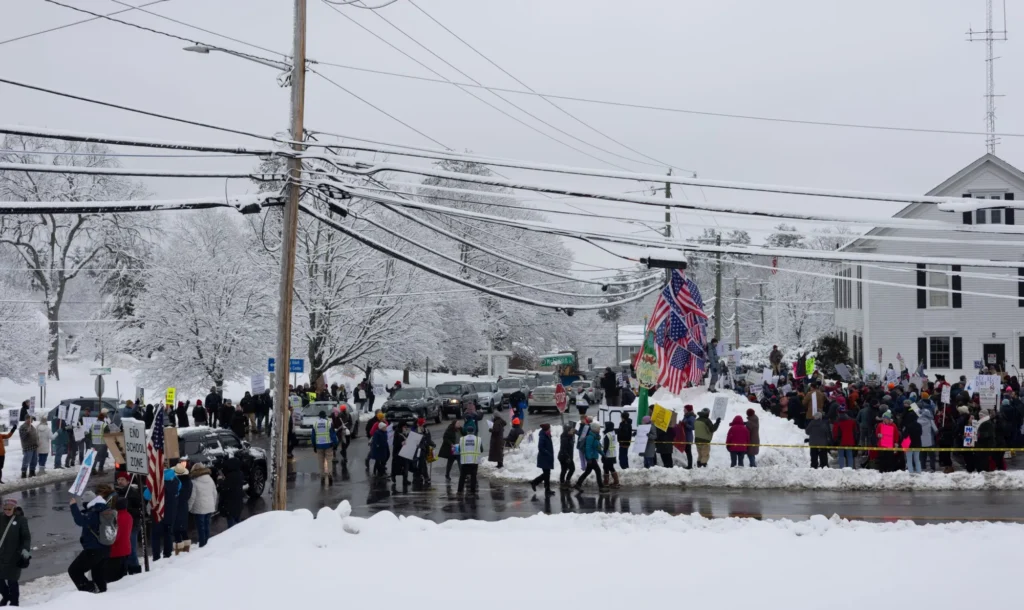 An organized convoy of cars painted in anti-ICE slogans paraded midway through the standout and unaffiliated snow plows were met with applause by protesters who saw them as a symbolic representation of their calls to “remove ICE.”