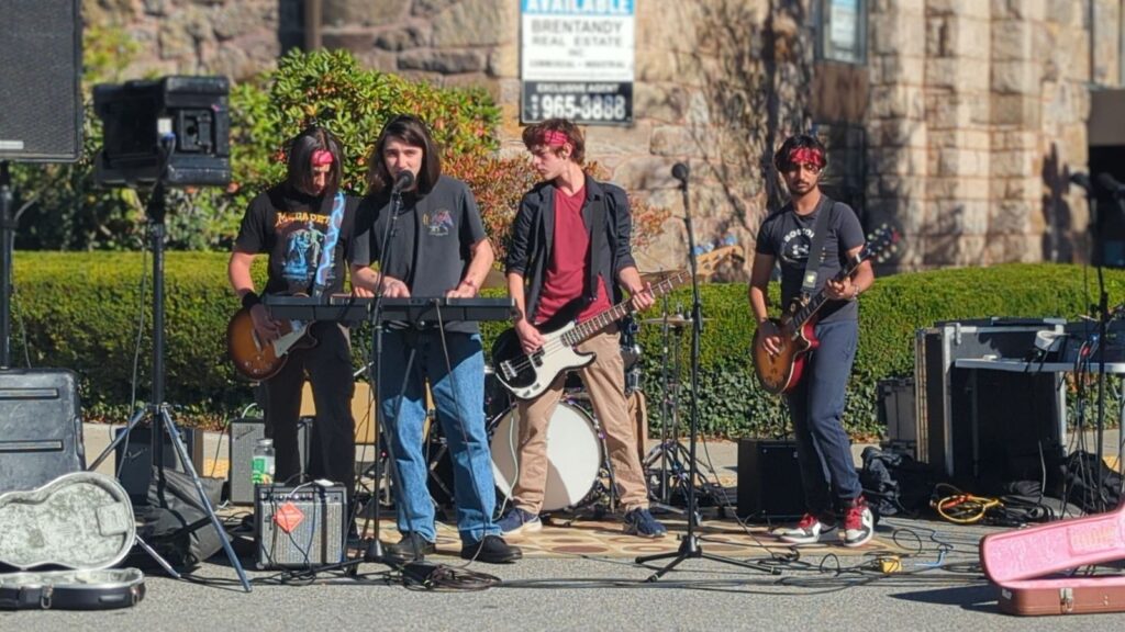 A band plays covers by Journey on the corner of the Newton Centre Green during the Newton Harvest Fair on Oct. 20, 2024. Photo by Bryan McGonigle