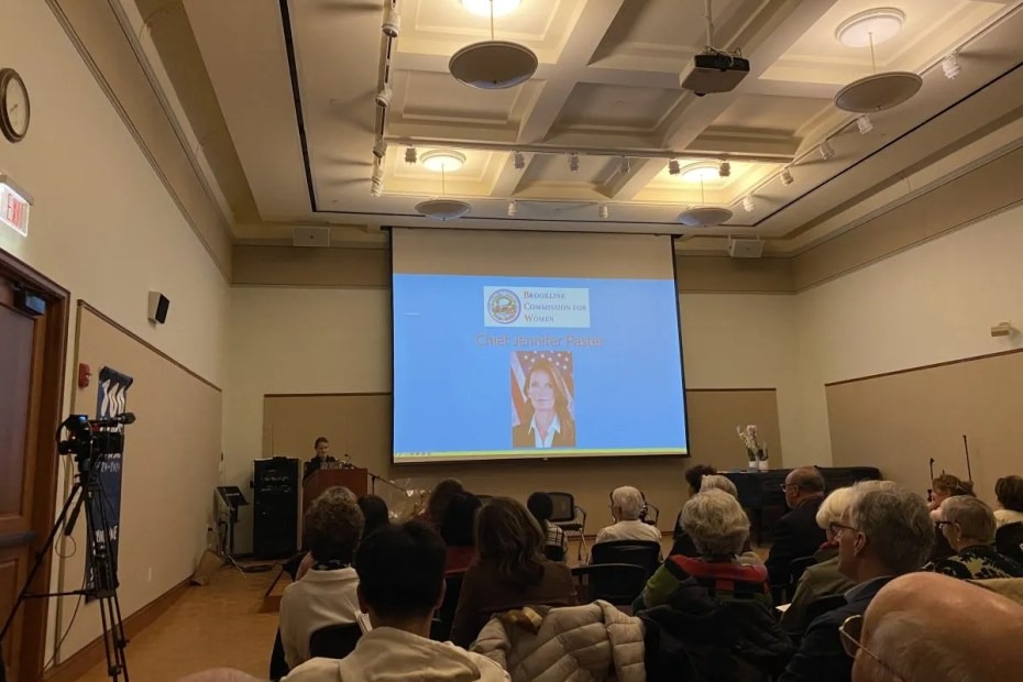 The annual event – which drew dozens of people to Hunneman Hall in the Brookline Public Library– began with a tribute to former Massachusetts first lady Kitty Dukakis, who lived in Brookline and died last Friday.