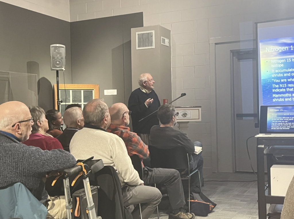 “There was an ice age that started here about 26,000 years ago. Ice as much as a mile thick covered this area and it bulldozed everything into the Nantucket Sound,” Parsons said at the talk. “So how does a tusk that’s been dated to 43,000 years old show up on the bottom of the pond, not under anything?”