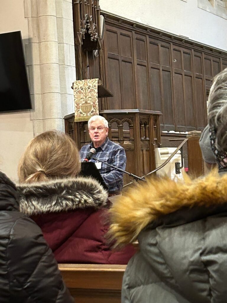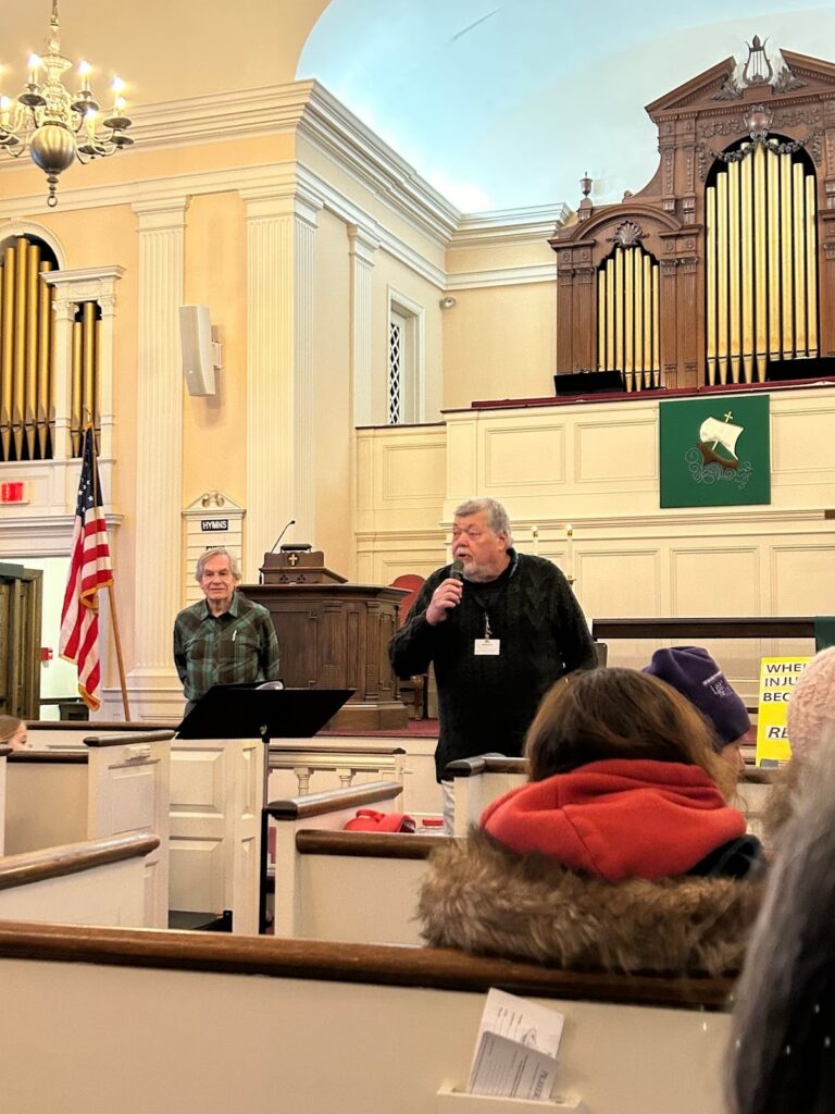 “We will walk in solidarity with immigrants and all those who demand to be governed by laws,” said Bruce Alexander, a First Congregational Church member who took to the podium.
