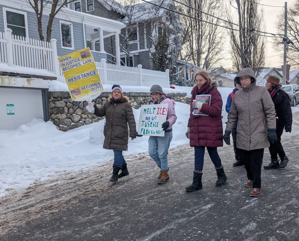 During the walk, participants held signs with phrases such as “Ice Makes for a Slippery Slope,” “ICE and DHS Out of Massachusetts” and “When Injustice Becomes Law, Resistance Becomes Duty.” Many had come to show their frustration about the Trump administration’s actions in Minneapolis and around the country.